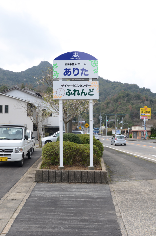 オープン告知チラシをご紹介した有料老人ホームありた様の施設サインを弊社で企画・デザイン・製作・施工いたしました。