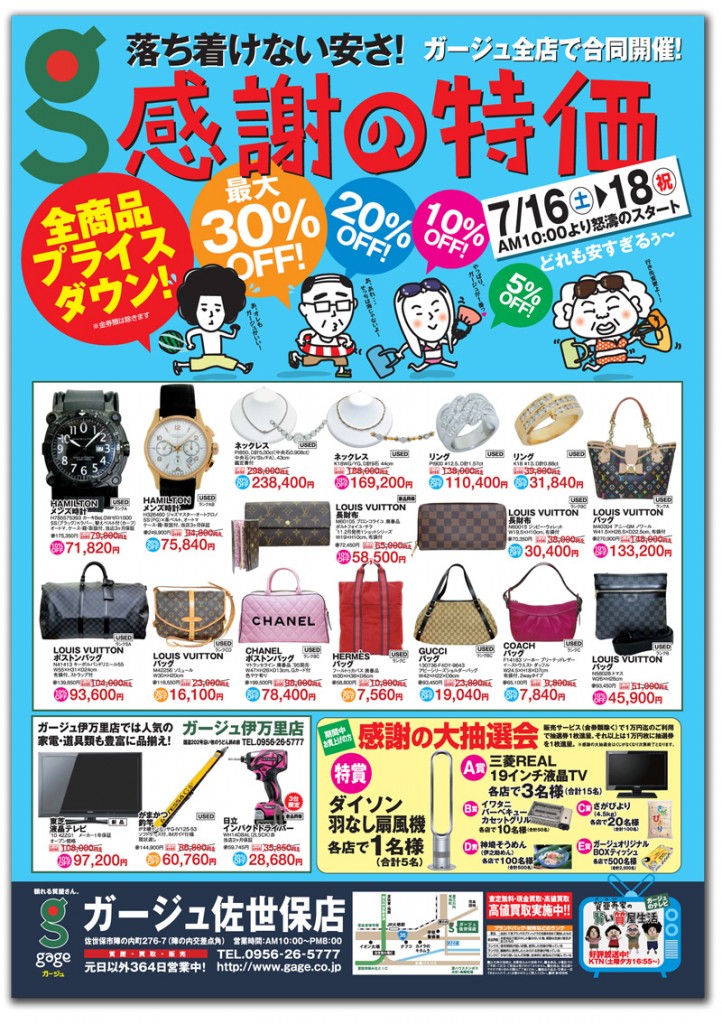 頼れる質屋さん、ガージュ佐世保店様のイベント折込チラシを制作いたしました。