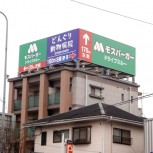 看板の大きさは1面あたり高さ3m、幅8.5mほどで、写真の通りビルの屋上を取り囲むように4面ついています。