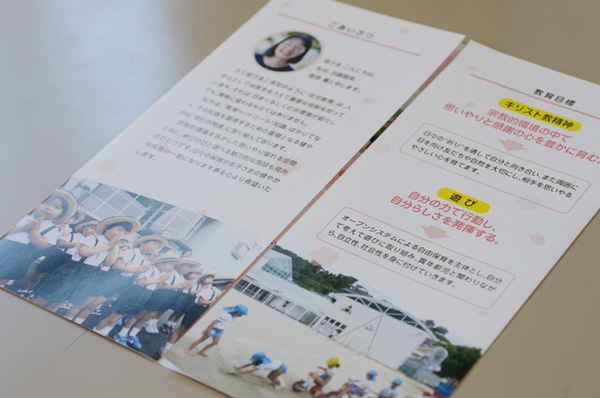 先日、園児募集ポスターをご紹介させていただいた桜の聖母幼稚園様のリーフレットを今年も制作いたしました。(企画・デザイン・撮影・印刷)