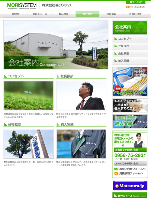 松浦市にある産業用ロボットシステム製作会社の森システムさまのホームページを制作いたしました。
