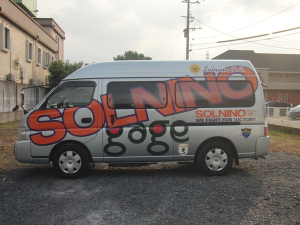 頼れる質屋さん、ガージュ様が応援する地元(唐津)の少年サッカーチームの遠征バス(日産キャラバン)のラッピング施工をいたしました。
